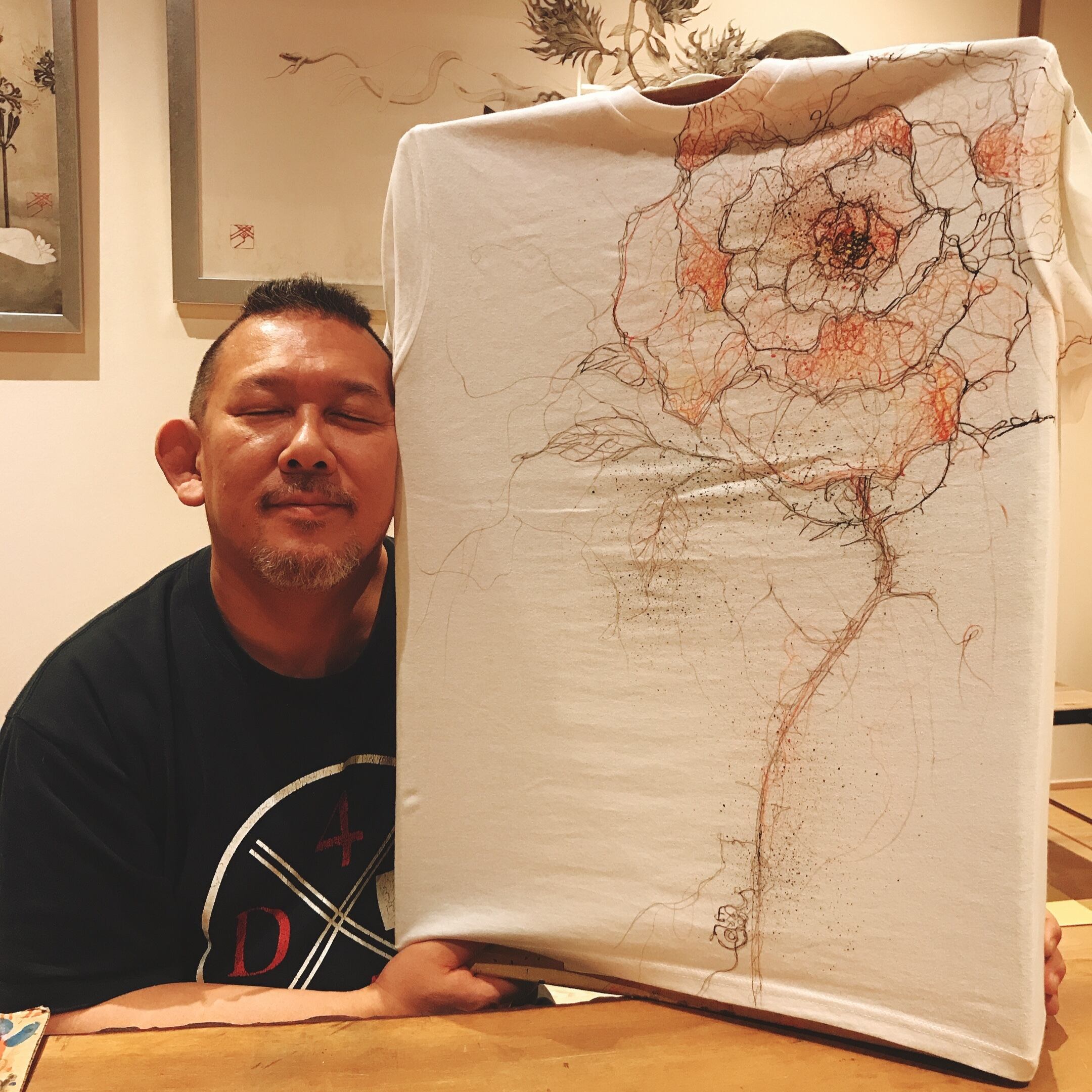 東學オリジナル手描きTシャツ「糸バラ (itobara)」