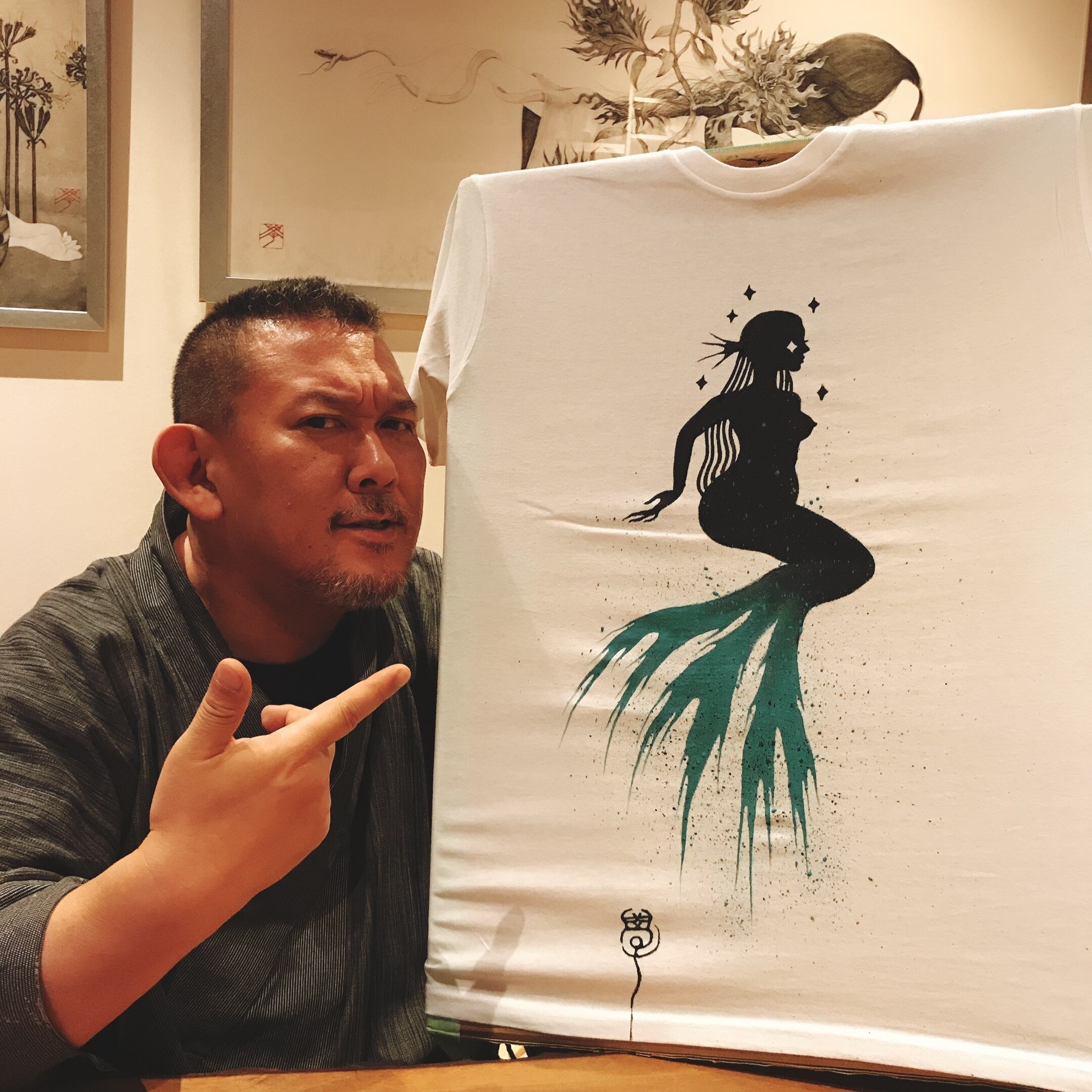 東學オリジナル手描きTシャツ「アマビエ (amabie)」